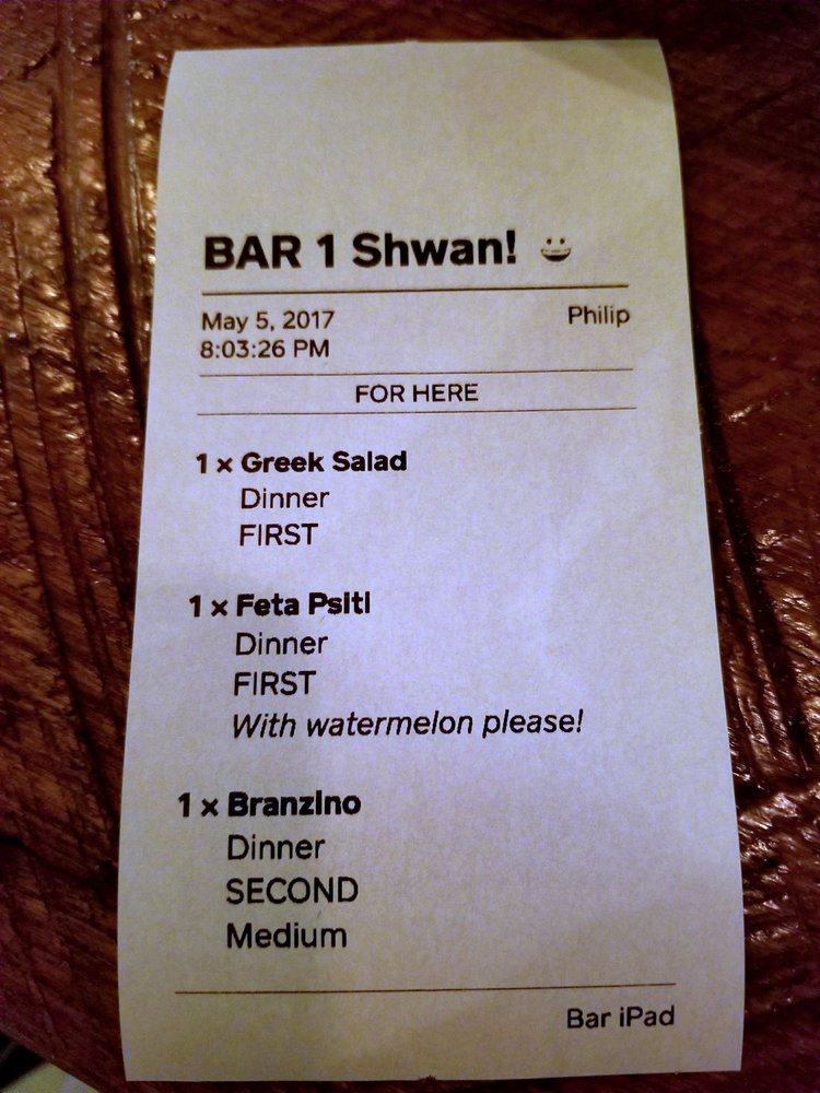 Fried kefalograviera, set aflame with brandy, doused with a squeeze of lemon.